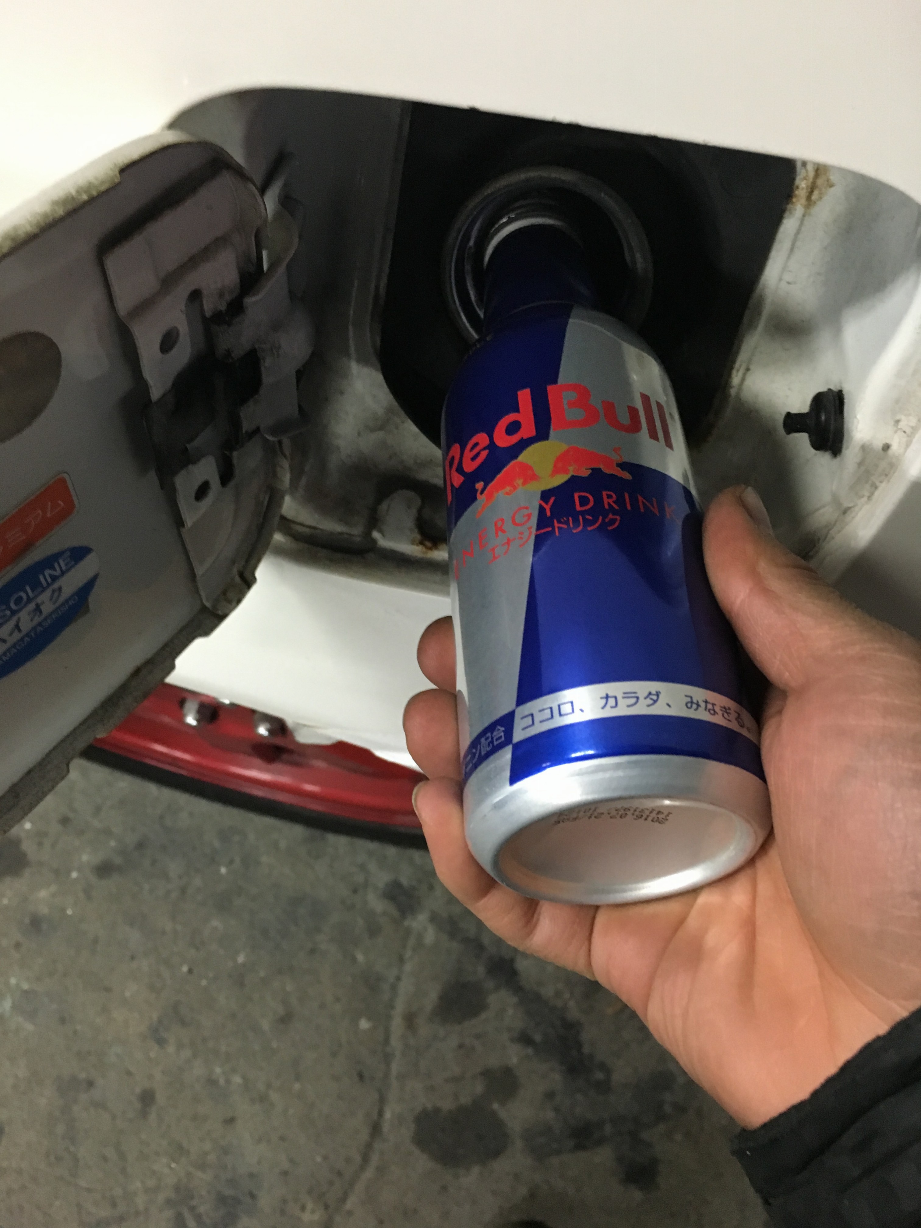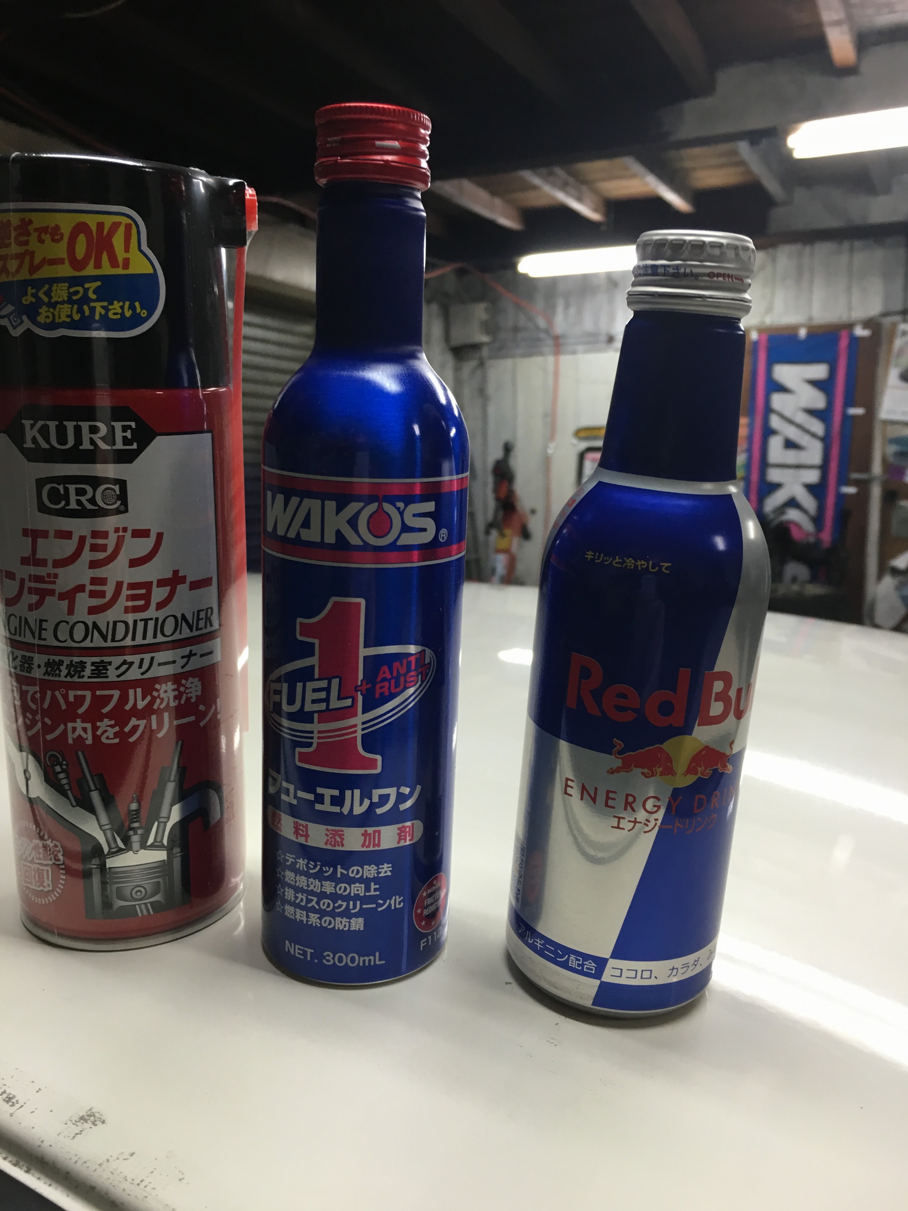 呉のエンジンコンディショナーとお馴染みフューエル1、作業のお供にレッドブル!